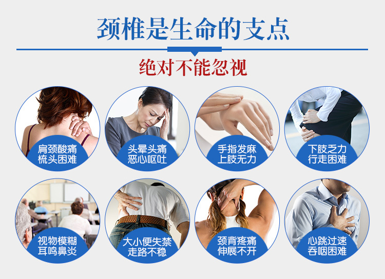 一、颈椎问题:颈椎劳损、曲度变直、反弓,颈部僵硬、脖子疼,头晕、恶心、压迫神经至手麻、眼花、后背酸胀